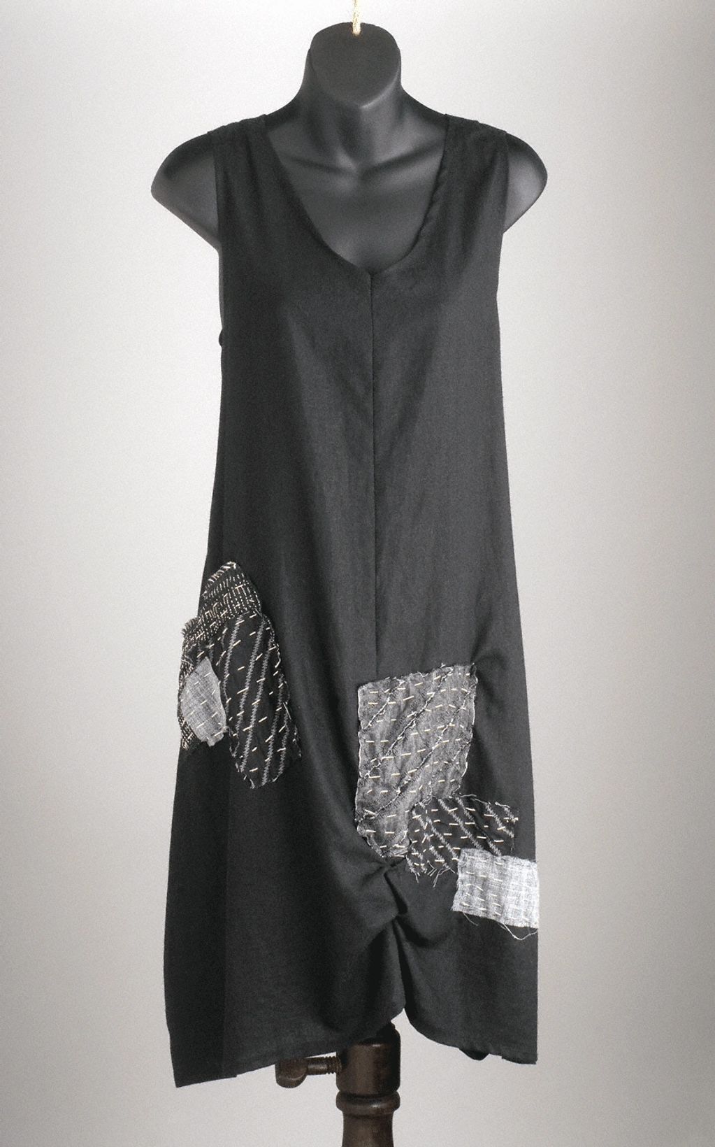 Linen tulip dress - patches with boro style stitching - $145